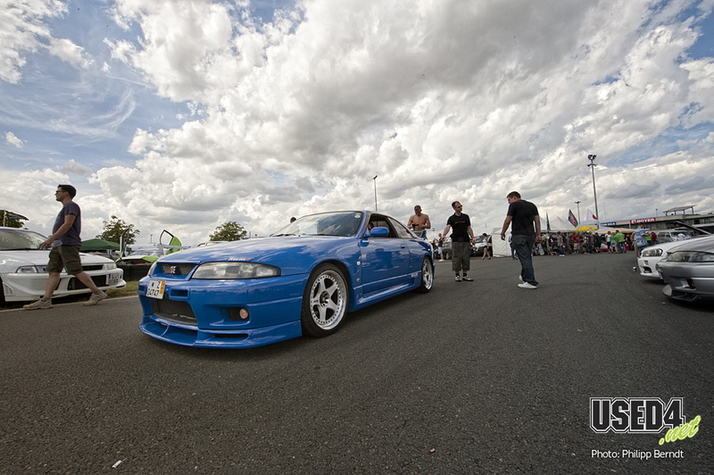 Wer dann doch eher mit dem Track-Sport versiert ist, fand sich in der Boxengasse ein, um in 20min Sessions über die Rennstrecke zu bügeln. Time-Attack Veteran Peter de Beus reiste extra aus den Niederlanden an, um seinen Singleturbo aufgeladenen BNR32 über den Rundkurs in Oschersleben zu scheuchen. Die infernale Geräuschkulisse, die dieses Fahrzeug von sich gibt, muss man einfach mal mit den eigenen Ohren gehört haben. Jedes mal wenn der Skyline die Tribüne an der Start/Ziel Gerade passierte, verabschiedete er sich flammenspuckend in die erste Linkskurve, bis man schließlich nur noch das erneute Öffnen der externen Wastegate vernahm.