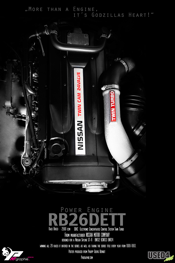Fast unverändert leistete das Triebwerk für die nächsten 14 Jahre in drei GT-R Generationen treue Dienste und verschaffte sich nicht nur bei den Fans Respekt. Trotz des Gentlemen Agreements der japanischen Fahrzeughersteller, das die Maximalleistung eigentlich auf 280 PS begrenzte, brannte das Triebwerk in der Regel satte 300-320 PS auf die japanischen Straßen. Zwei T25 Garett Lader befeuerten im Serientrimm die 2,6 Liter Hubraum und füllten die 6 Zylinder mit 0,78bar Ladedruck.