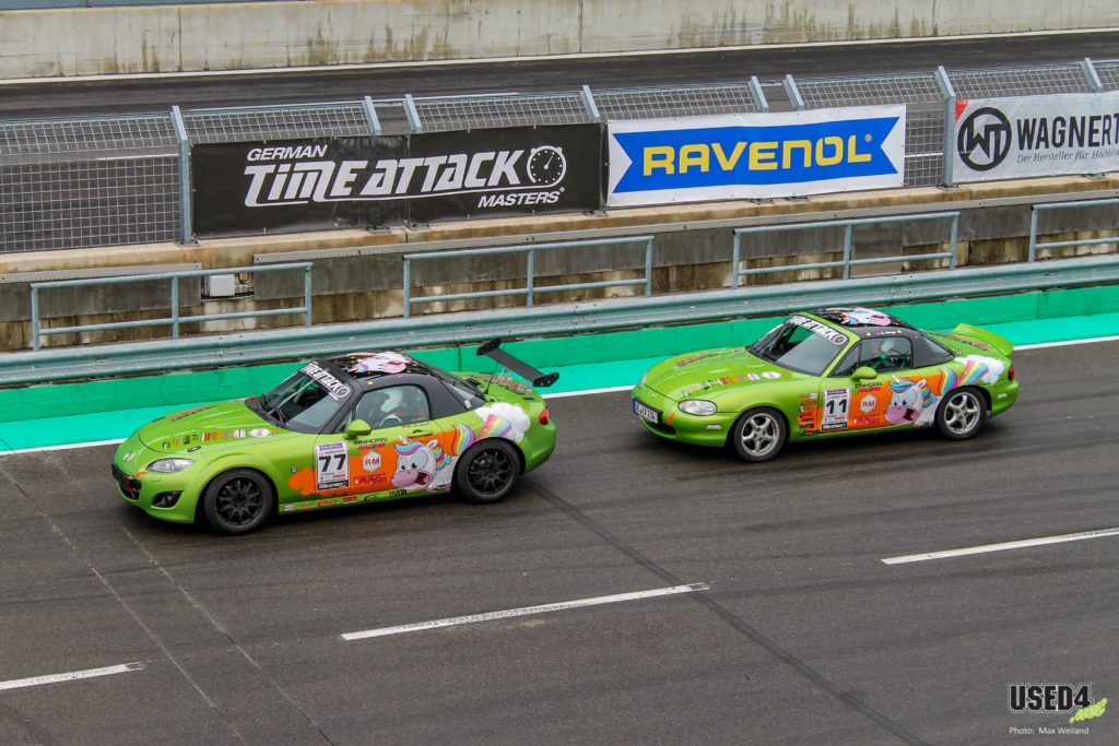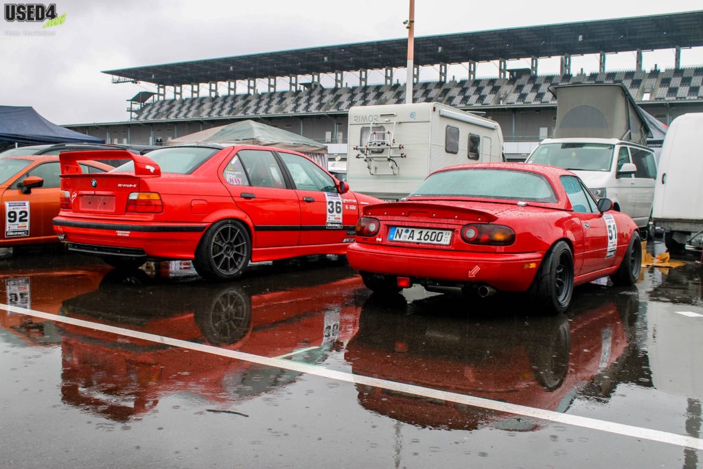Hendrik Steinbrecht (MX5) und Patrick Divican (e36) sind aus Nürnberg bzw. Frankfurt am Main auf eigener Achse angereist um am Timeattack-Lauf teilzunehmen. Mehr Rock and Roll geht nicht. Der MX5 hat erst am Vortag des Events seine Motorabstimmung bekommen und hat jeglichen Missbrauch tadellos hingenommen.