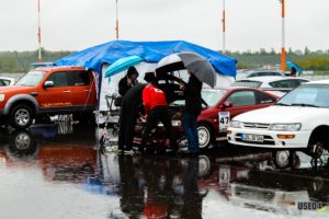 Als ich kurz vor 10 Uhr am Samstag eintraf ließ der Wetterbericht noch verlauten, dass es nur bis zum Mittag regnen sollte. Aber wann stimmen die Prognosen schonmal mit der Realität über ein? Aber was Aktienhändler und Wetterforscher gleicher Maßen ihren Job kosten kann, hat viele Motorsport begeisterte trotzdem nicht daran gehindert, das Beste aus dem Tag zu machen.
