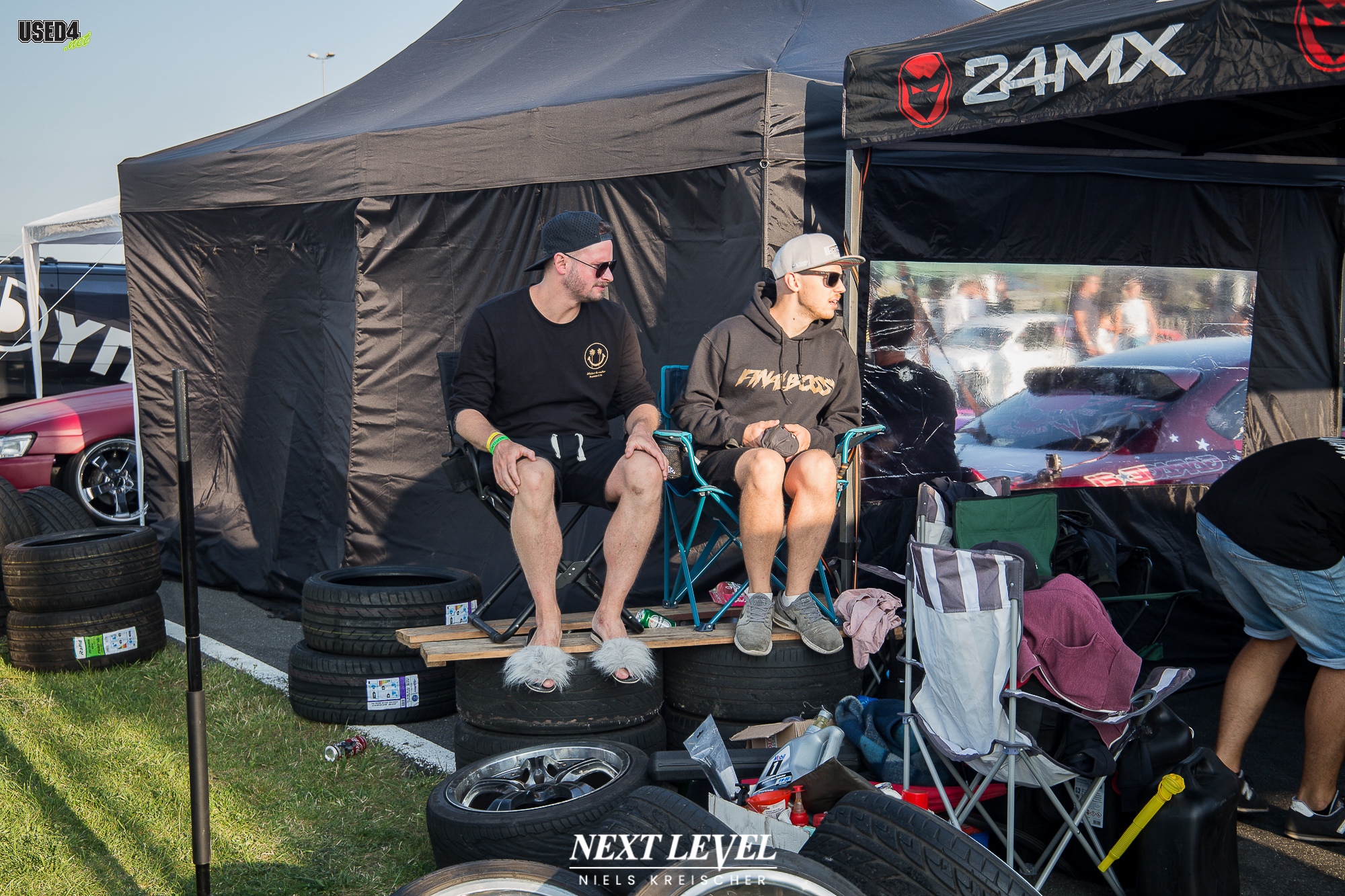 Nicht zu vergessen ist die ungemein lockere und gute Stimmung im ganzen Areal. Seien es Veranstalter, die jeden der 80 Fahrer und die Autos dazu genauestens kennen, Zuschauer von nah und fern, Teams aus Finnland, Schweden, UK, Polen, Fahrer aus Australien oder eben unsere Jungs aus Deutschland, einfach jeder war gut drauf. Good Vibes only, mein Lebensmantra, wird hier vollkommen gelebt. Den ganzen Tag driften und abends Hardbassparty in der Box? Das Team Fatclan hat mal eben nach dem Nachtdriften mit allen Leuten die Boxengasse kurzzeitig zur Partyarea umfunktioniert.