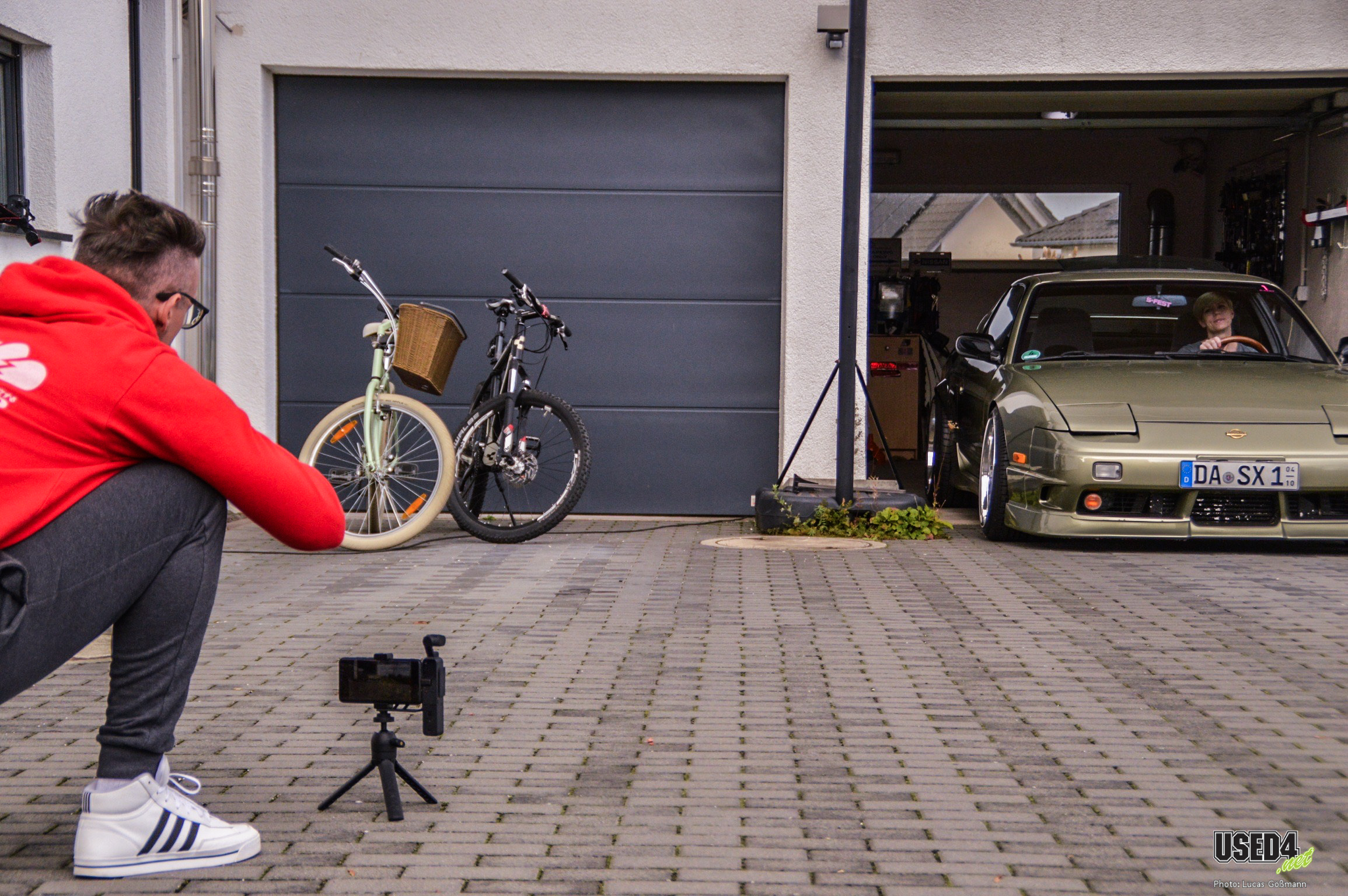 Bei der Drohne handelt es sich eine DJI Mini 4 Pro, selbstverständlich auch schon mit USED4.net gelabelt (AIR USED4.net 😊) Die regulären Aufnahmen filmen wir mit unserer DJI Pocket 2, auf den ersten beiden Bild zu sehen beim Dreh von Car Loft of Love. Wenn eine zweite Kameraperspektive der gleichen Szene notwendig ist, kommt auch gerne mal ein IPhone 14 Pro zum Einsatz, das in Sachen Bildqualität der DJI in nichts nachsteht.