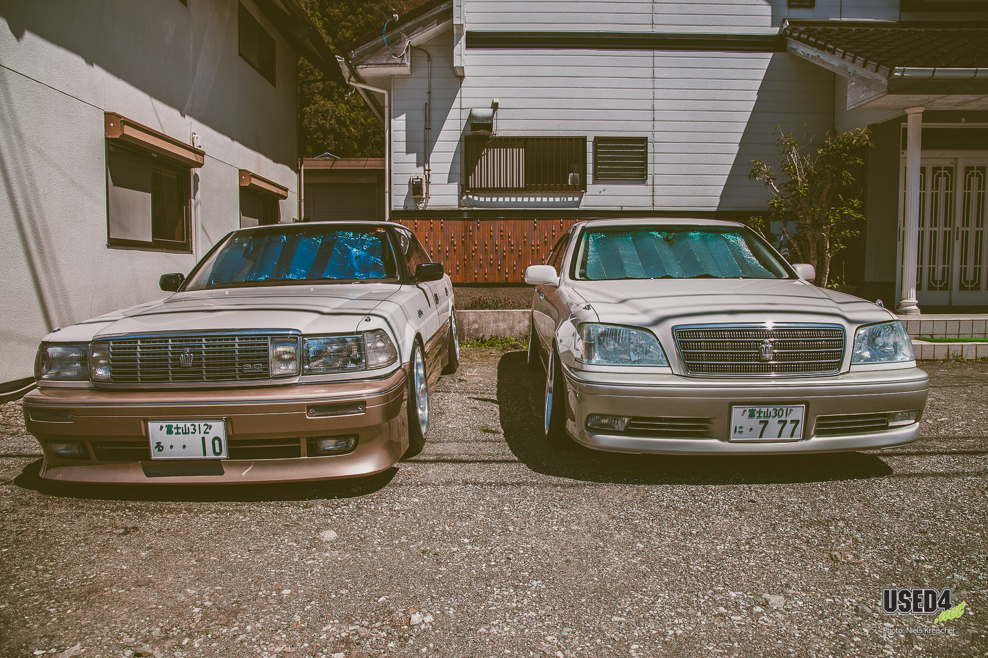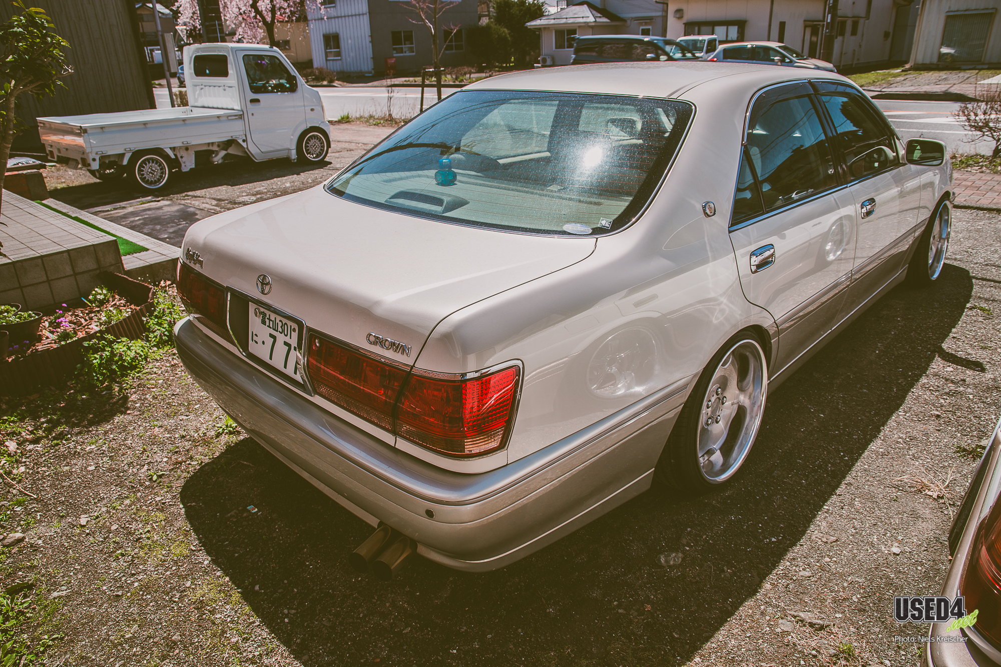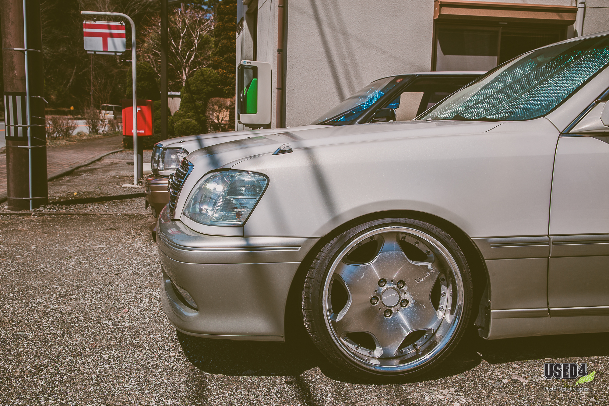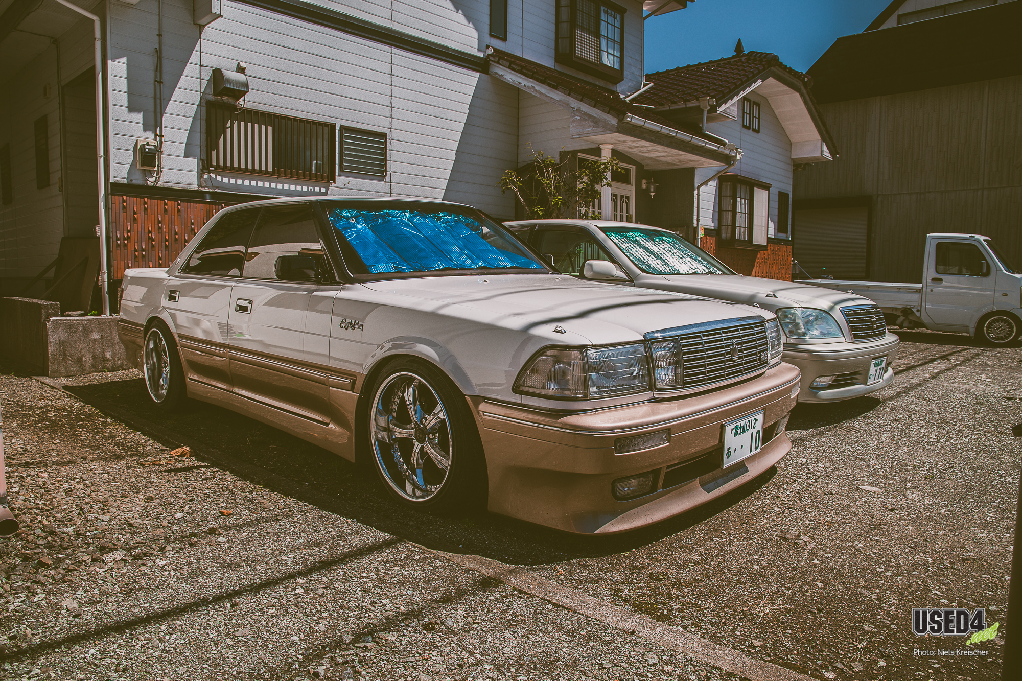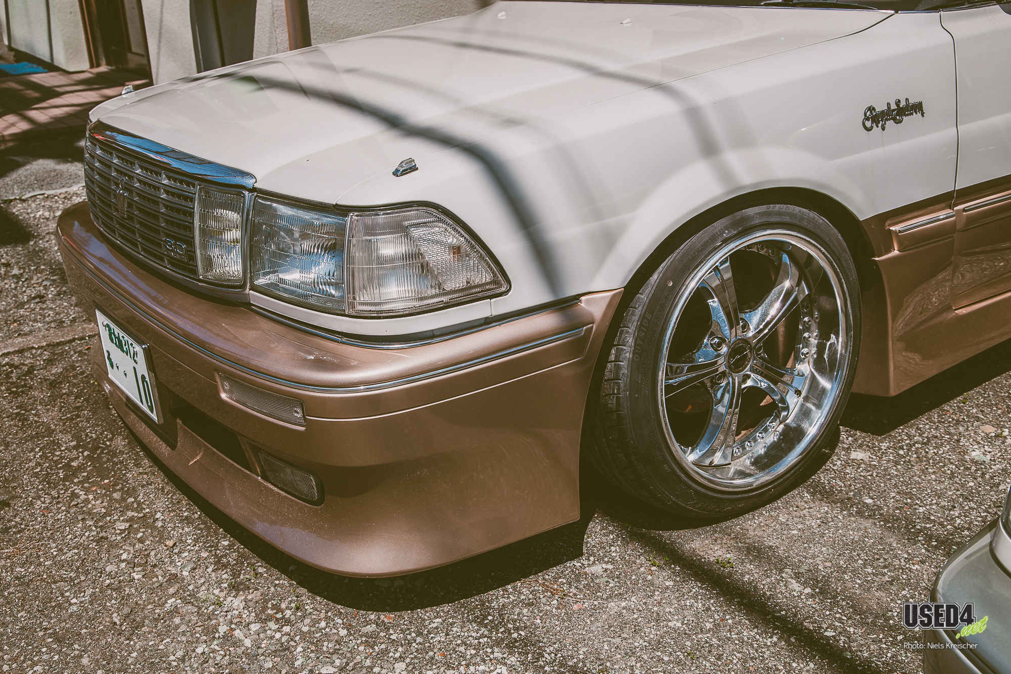 So besonders wie diese beiden superheißen Toyota Crown in TwoTone-Lackierung und mit VSKF bzw. SSR Visconti Felgen, die dort einfach königlich parkten.