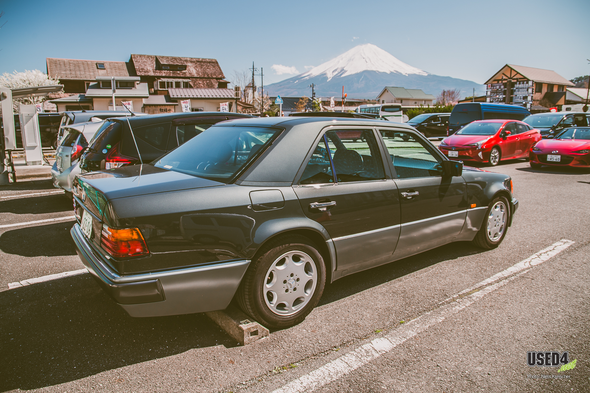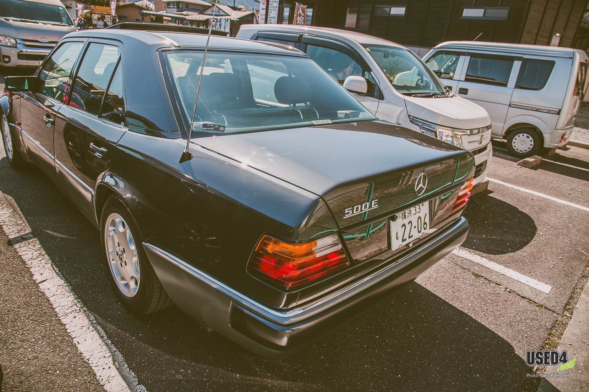Oder auch dieser 500E auf einem Random-Parkplatz: schwäbische V8-Power als Coproduktion aus den 90ern von Mercedes und Porsche, selbstverständlich in Japan als Linkslenker ausgeliefert.