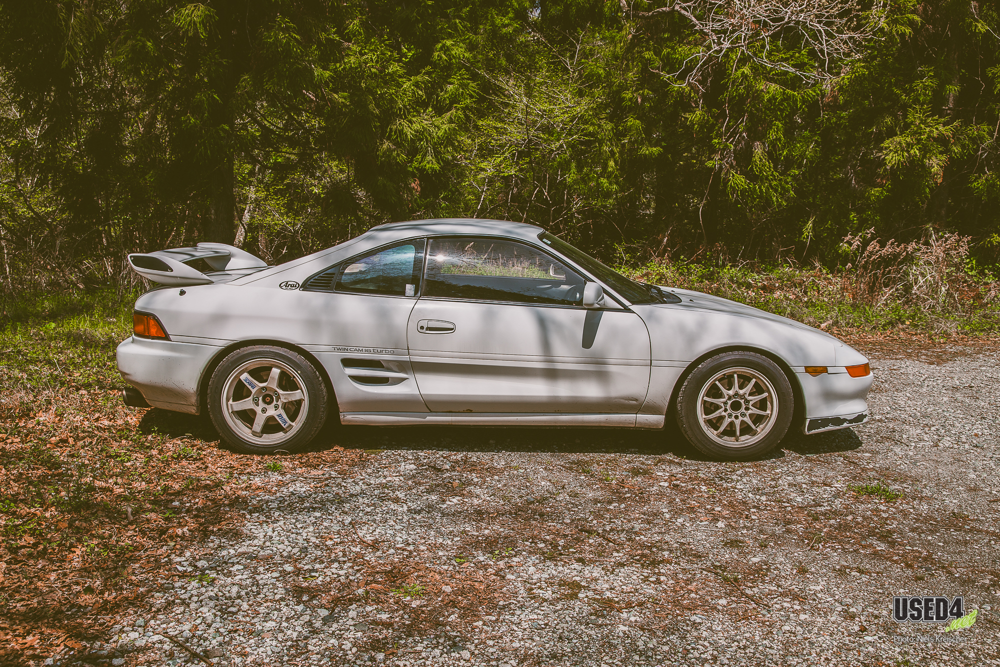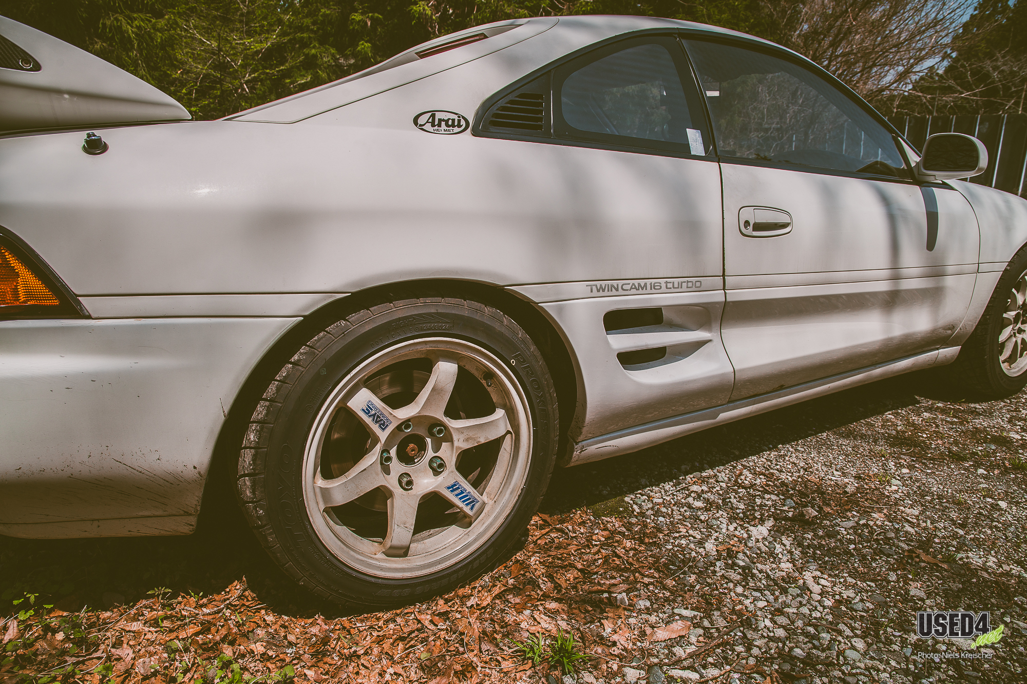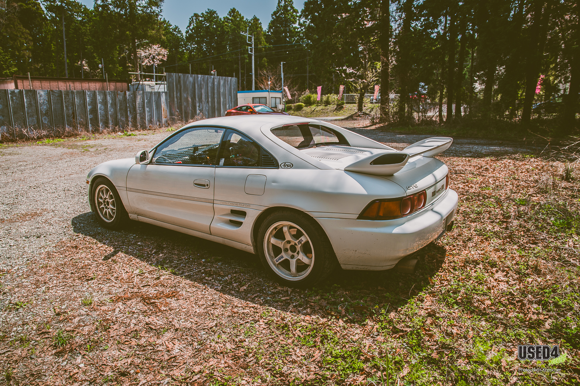 Toyota MR2 Turbo (W2) mit 3S-GTE, Mismatch-Wheels (TE37 an der HA und CE28N an der VA) und einem ganz besonderen Lenkrad, das weniger dem Umgreifen, sondern mehr dem Angriff dient.