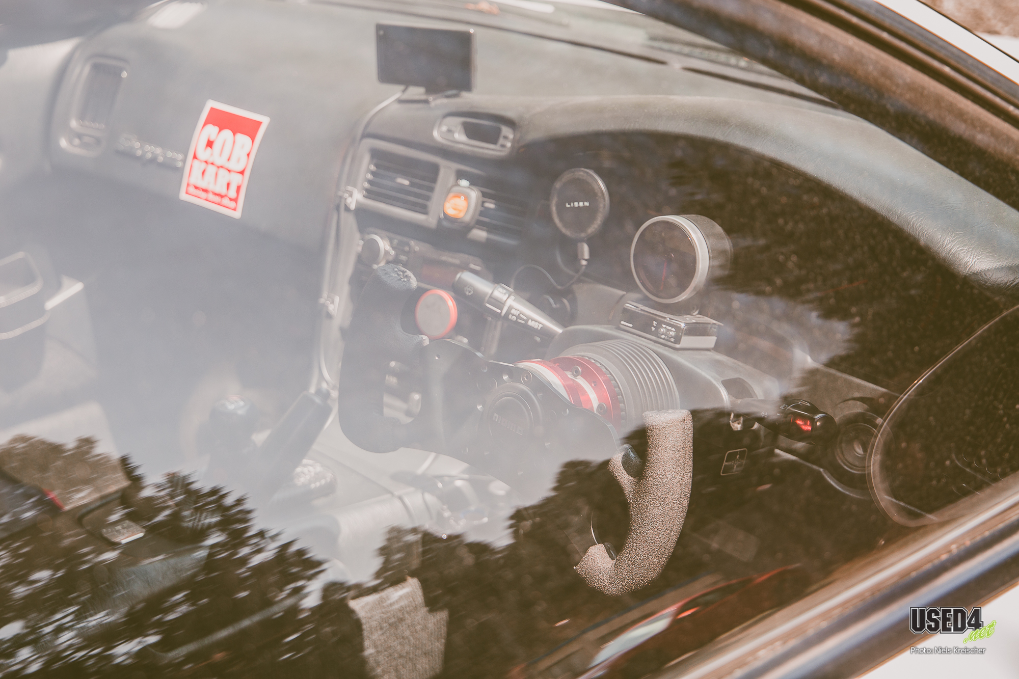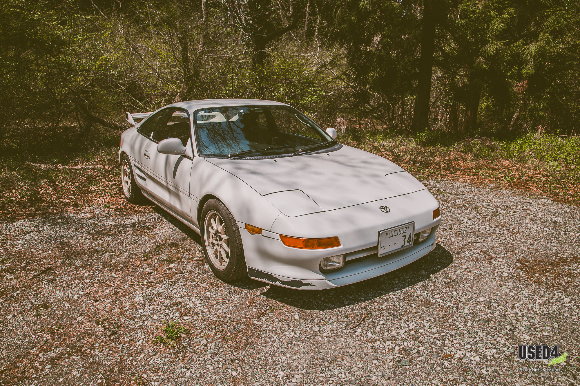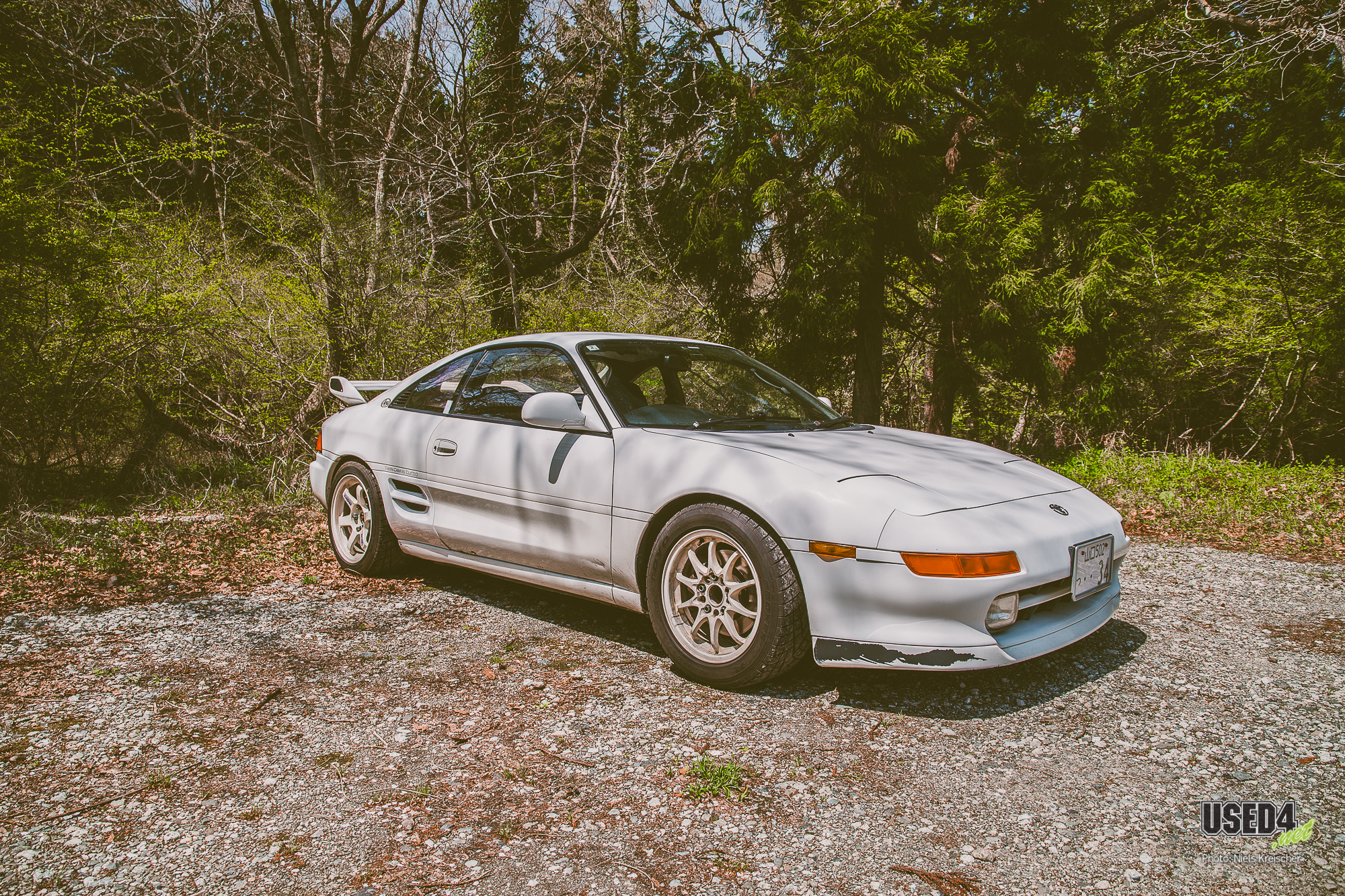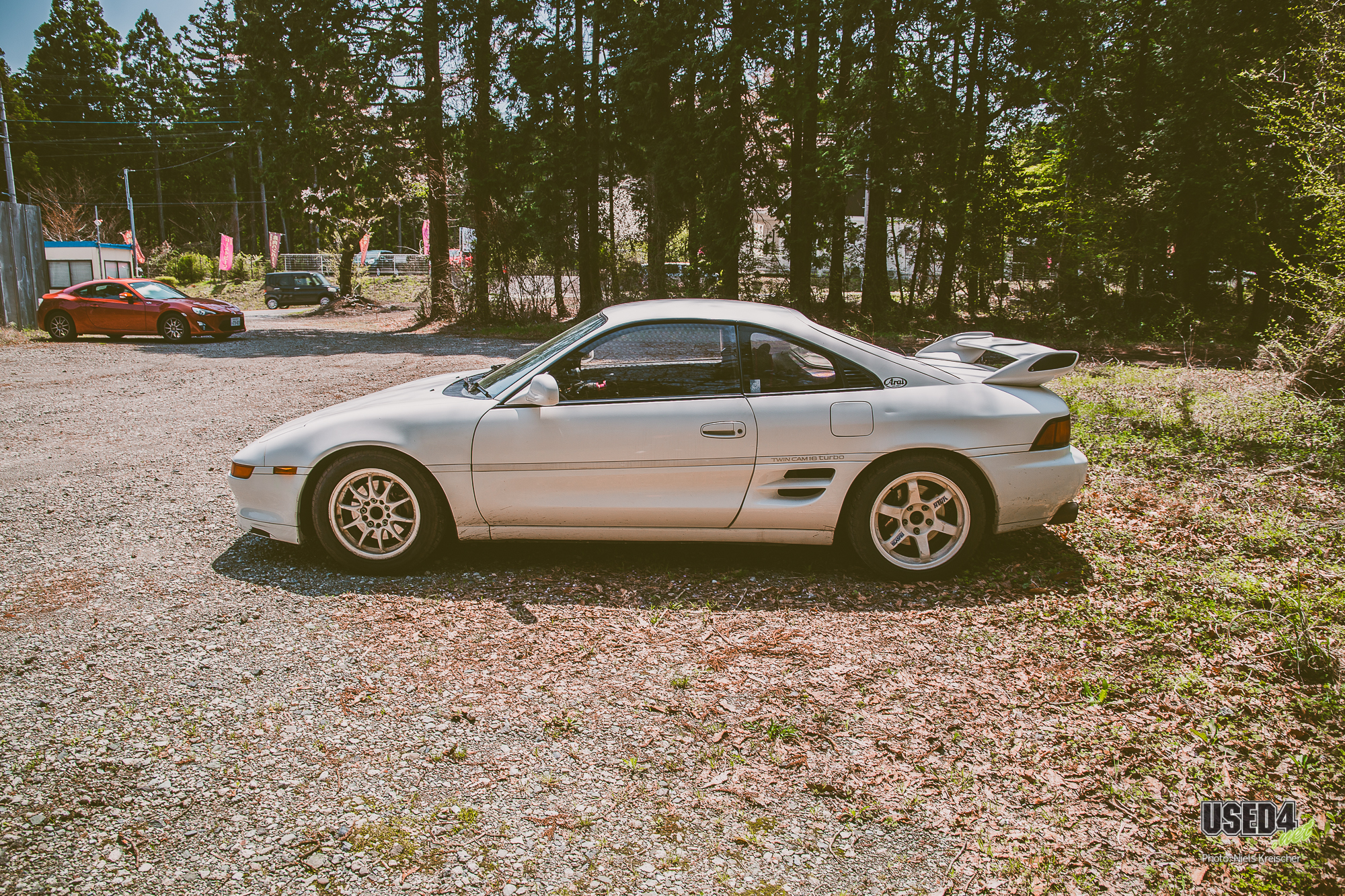 Toyota MR2 Turbo (W2) mit 3S-GTE, Mismatch-Wheels (TE37 an der HA und CE28N an der VA) und einem ganz besonderen Lenkrad, das weniger dem Umgreifen, sondern mehr dem Angriff dient.
