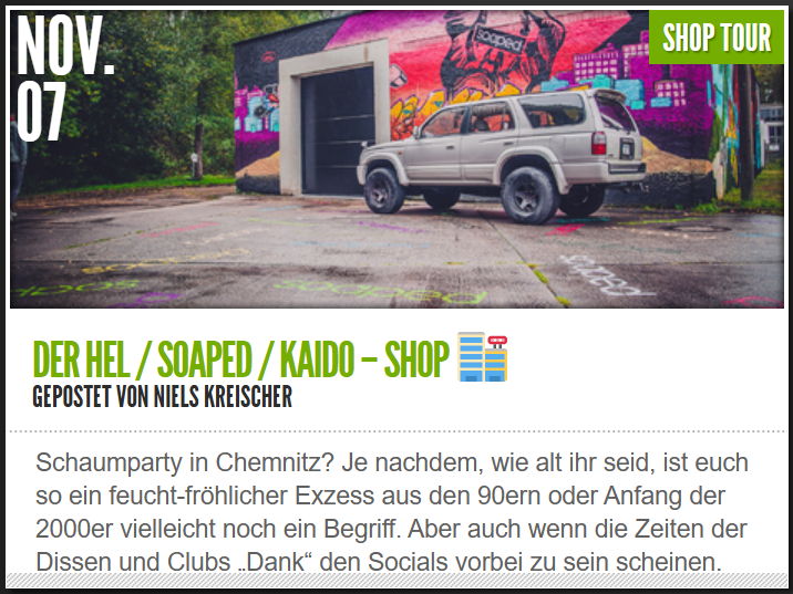 Im Anschluss an die Shop Tour entstand ĂŒbrigens auch der Podcast 006 von USED4-Editor Andy Kmoch, der Markus von HEL / Soaped / KAIDO interviewte: