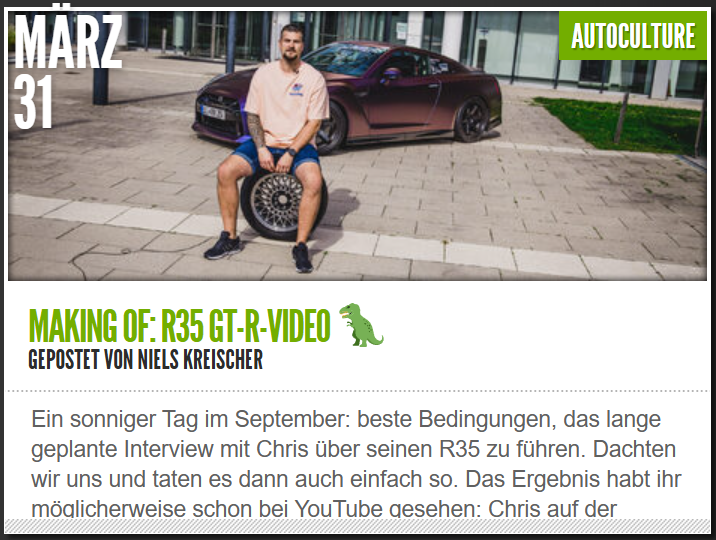 Das Making-Of des erfolgreichen R35-Videos mit Chris, als Artikel mit vielen Hintergrundinfos, auch zum USED4-Youtubekanal.