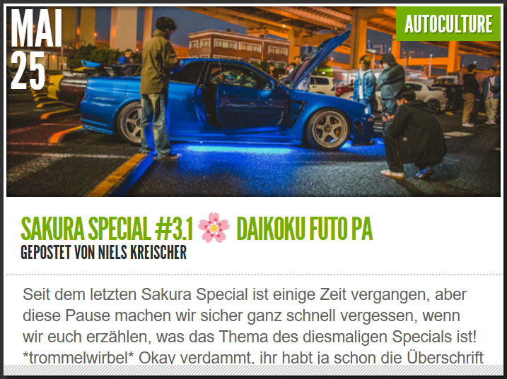 Das Sakura Special đž zu den beiden berĂŒhmten ParkplĂ€tzen Daikoku Futo PA und Umihotaru PA teilte ich aufgrund der hohen Anzahl von Bildern und Infos in zwei Teile: