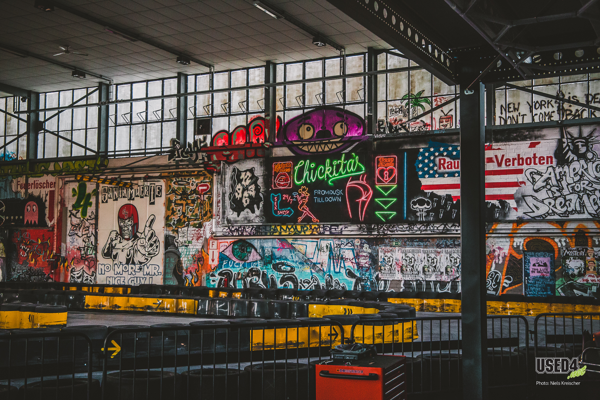 Die Kartbahn am Flugplatz Mendig trĂ€gt den Namen Art.Kart nicht ohne Grund und diese Mischung aus Industriecharme des ehemaligen Flugzeughangars und den vielen Neon-Graffiti fanden wir so auĂergewöhnlich wie cool.